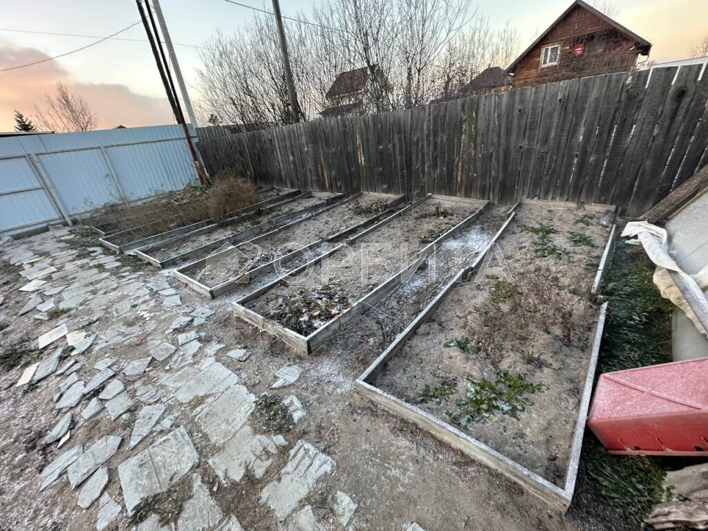 Участок разработан. Имеются насаждения: Вишня, красная и черная смородина, черноплодка, крыжовник, яблони, красная черемуха, клубника. Цветы: пионы, лилии, розы