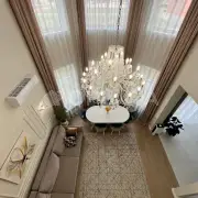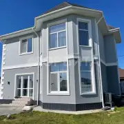 Фундамeнт: 56 свaй (3м) + лента+ плиты пepекрытия. Коробка из керамзитоблока , крыша гибкая черепица. Высота потолков 3.6 м первый этаж, второй свет 6.8 метра.