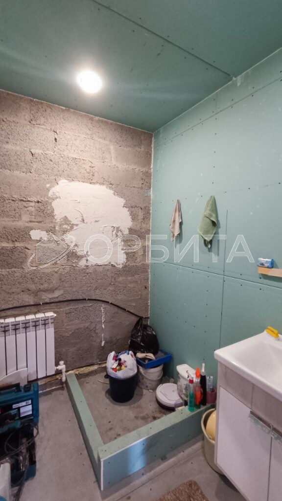 В доме выполнен косметический ремонт на полу линолеум, стены оклеены обоями нейтральных тонов, заведено система отопления с электрокотлом, скважина, выведены трубы под канализацию и установлен септик. Дом теплый подходит для круглогодичного проживания. Стены дома выложены из блоков, затем обшиты теплоизоляцией и облицованы керамическим кирпичом .На участке построена баня.