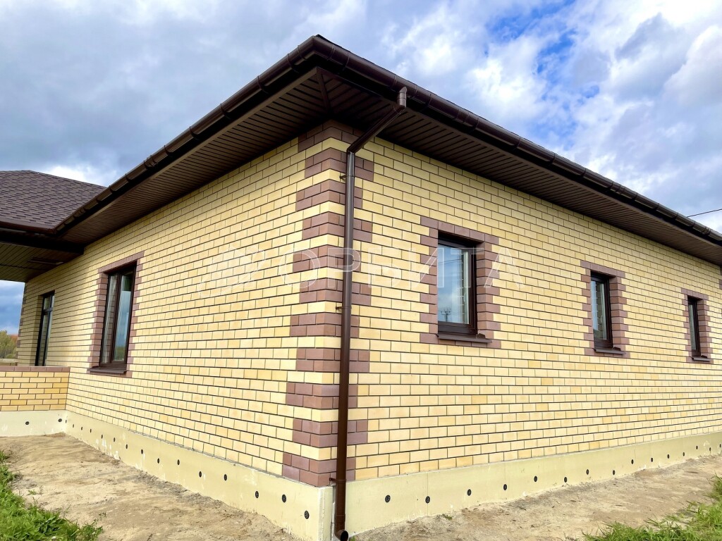 Материал стен: керамзитобетонные блоки толщиной 300 мм с утеплителем 10 см и облицовочным кирпичом.