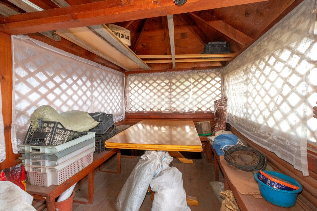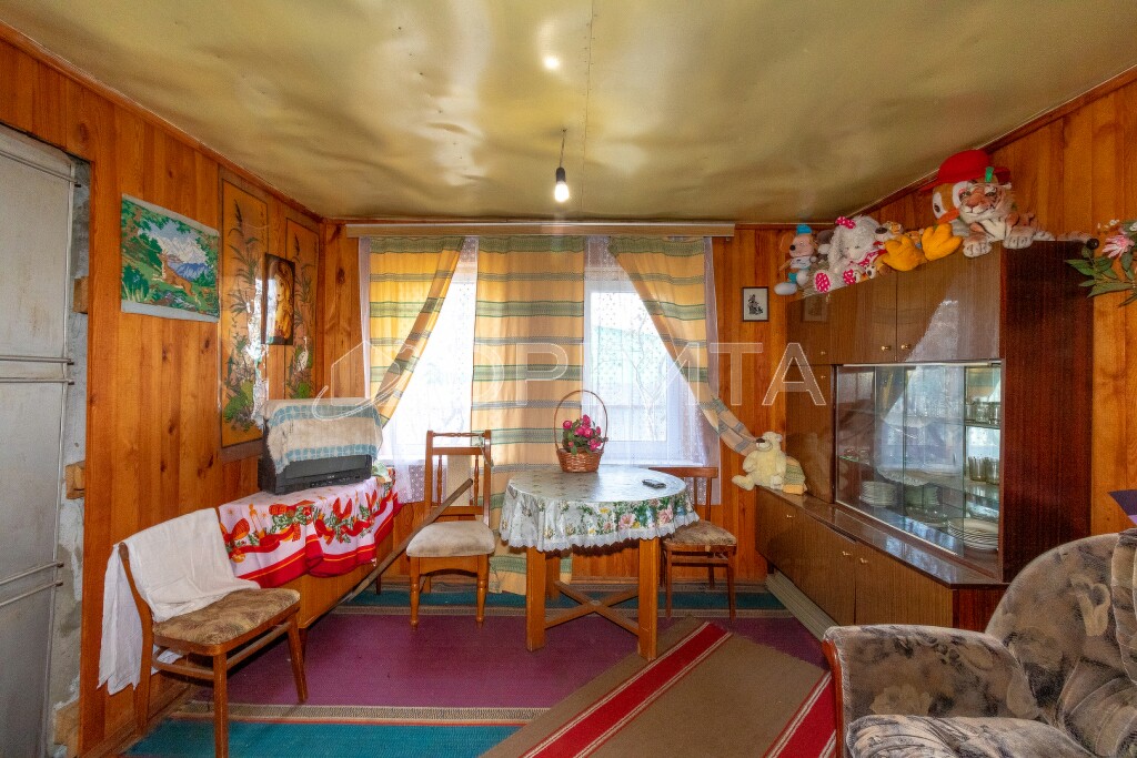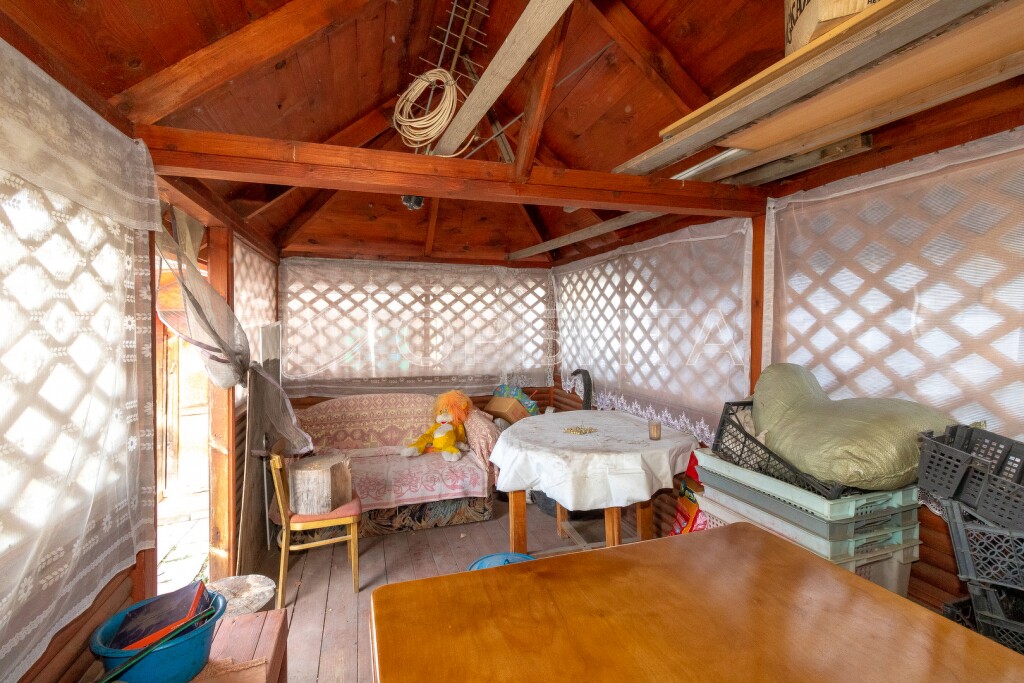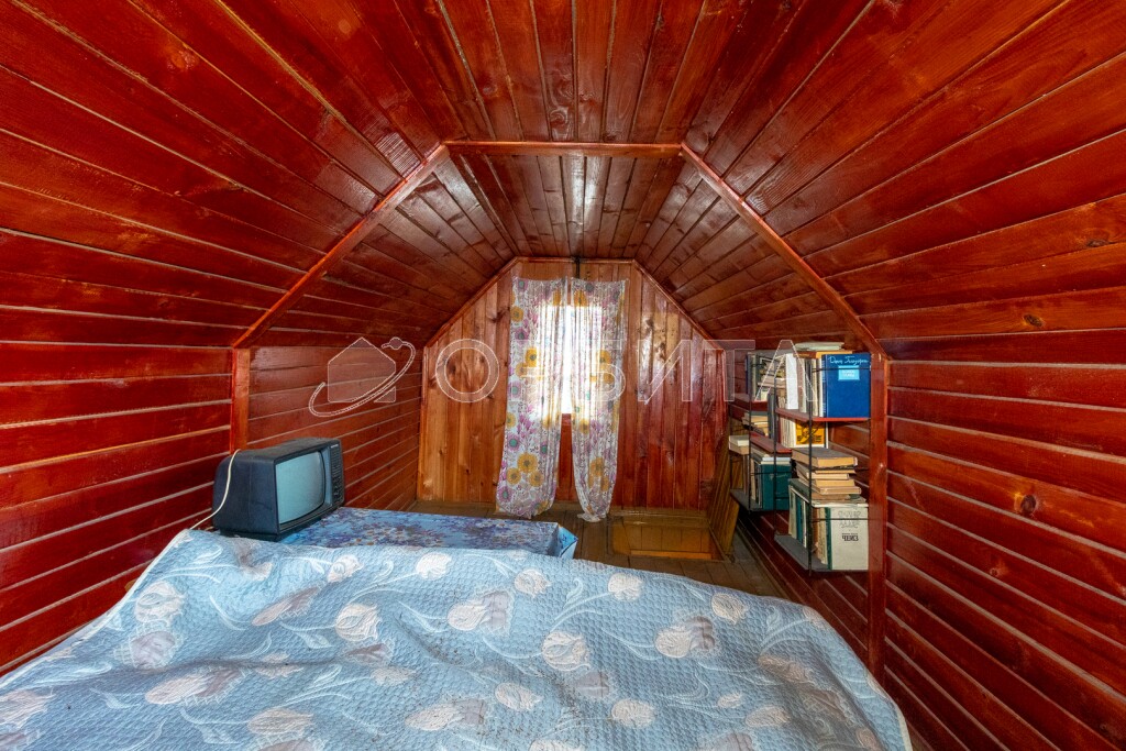 Дача родителей, один из которых является собственником участка. На участке находится дом площадью 5 на 6 метров с печным отоплением. Внутри дом обшит вагонкой, также есть летняя веранда площадью 2 на 6 метров. Мансардный этаж обшит вагонкой, но не утеплён.