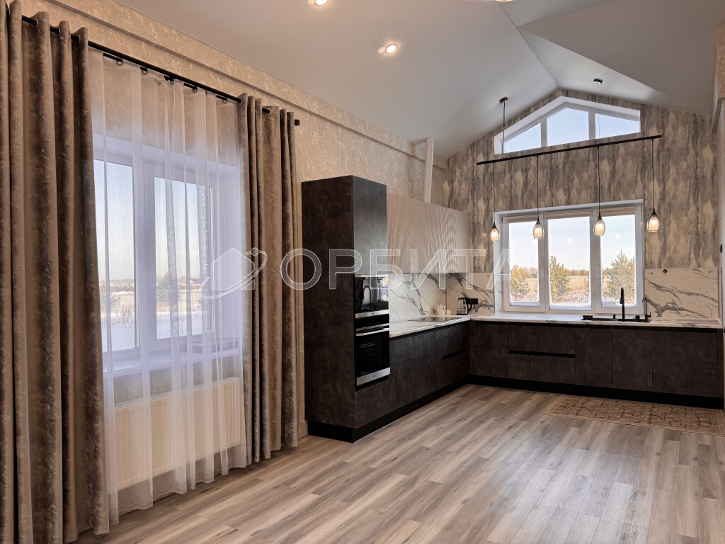 - кухня-гостиная площадью 36.8 кв м с высоким потолком, вторым светом и выходом на террасу,