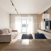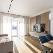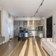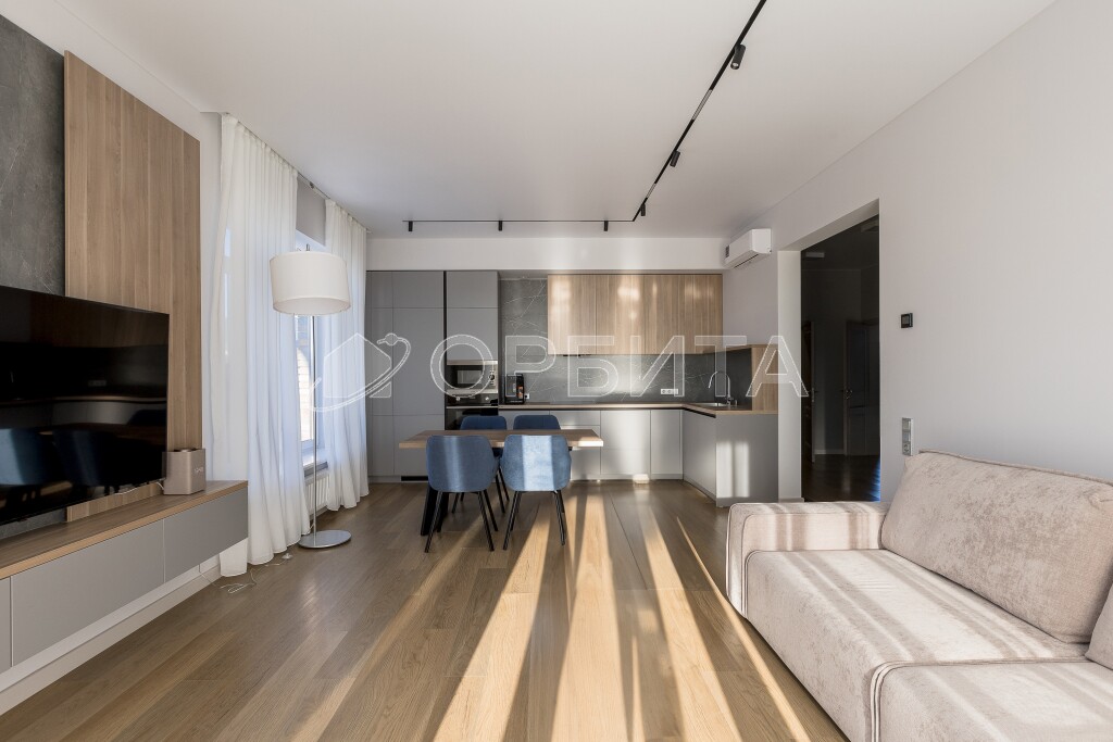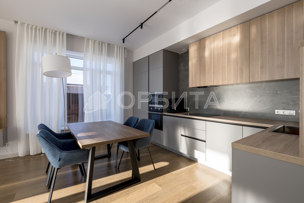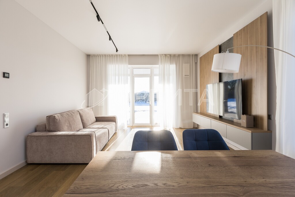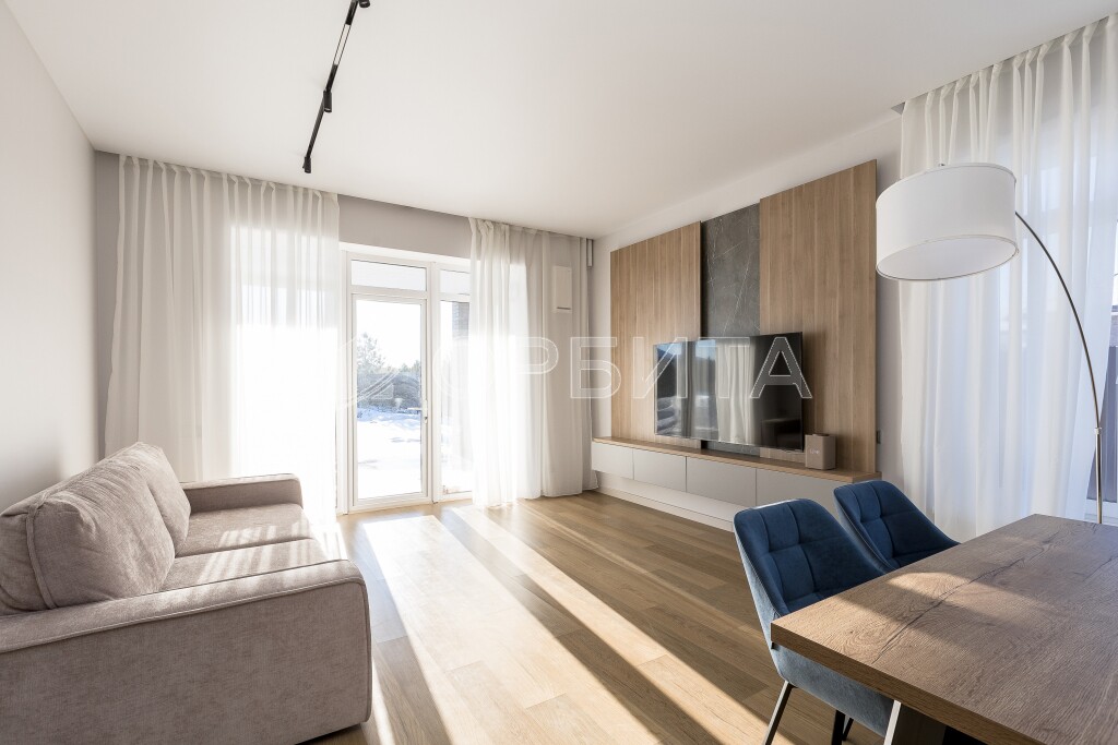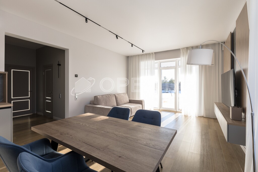 Современная мебель и бытовая техника — готов к проживанию! Высокие потолки 3 метра и большие окна, которые наполняют дом светом.