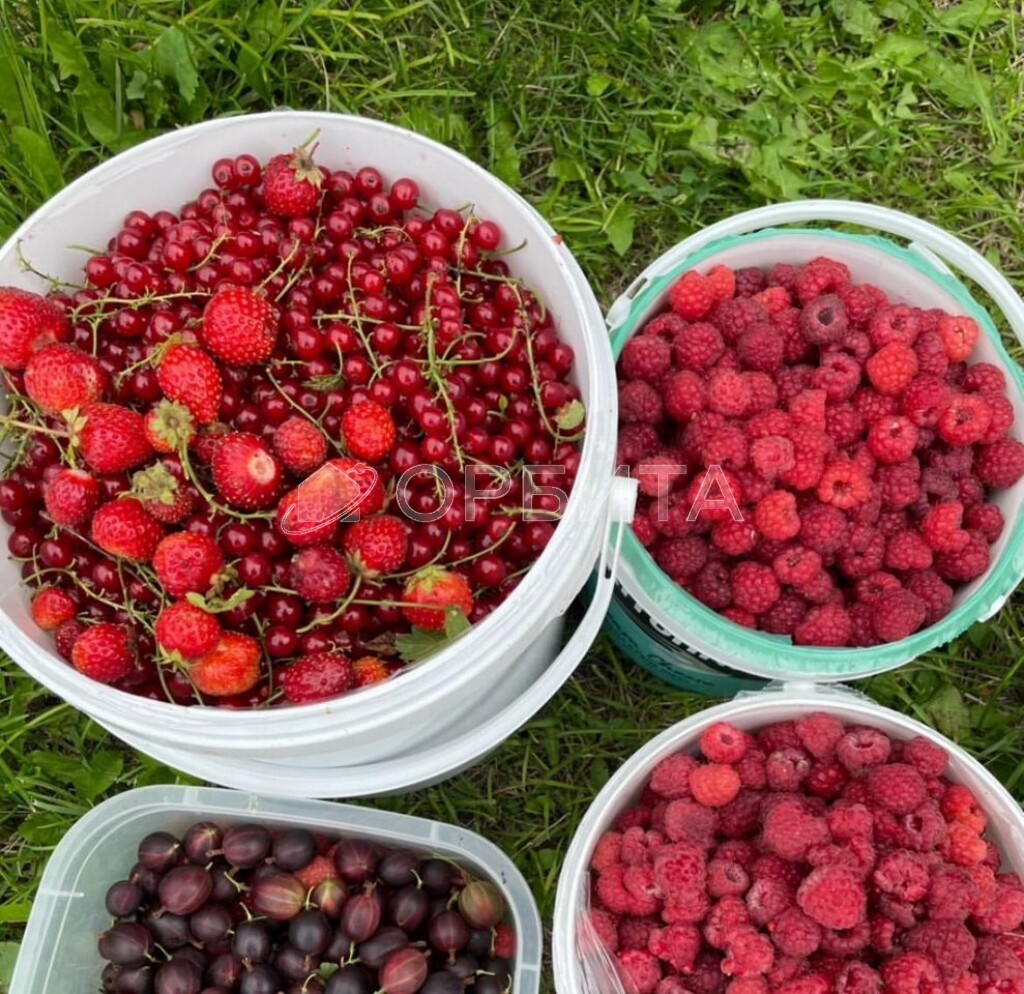 Много крупной сортовой малины и пышных пионов — цветущих символов красоты.