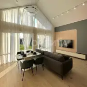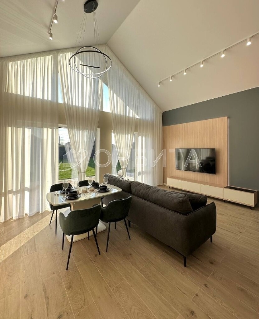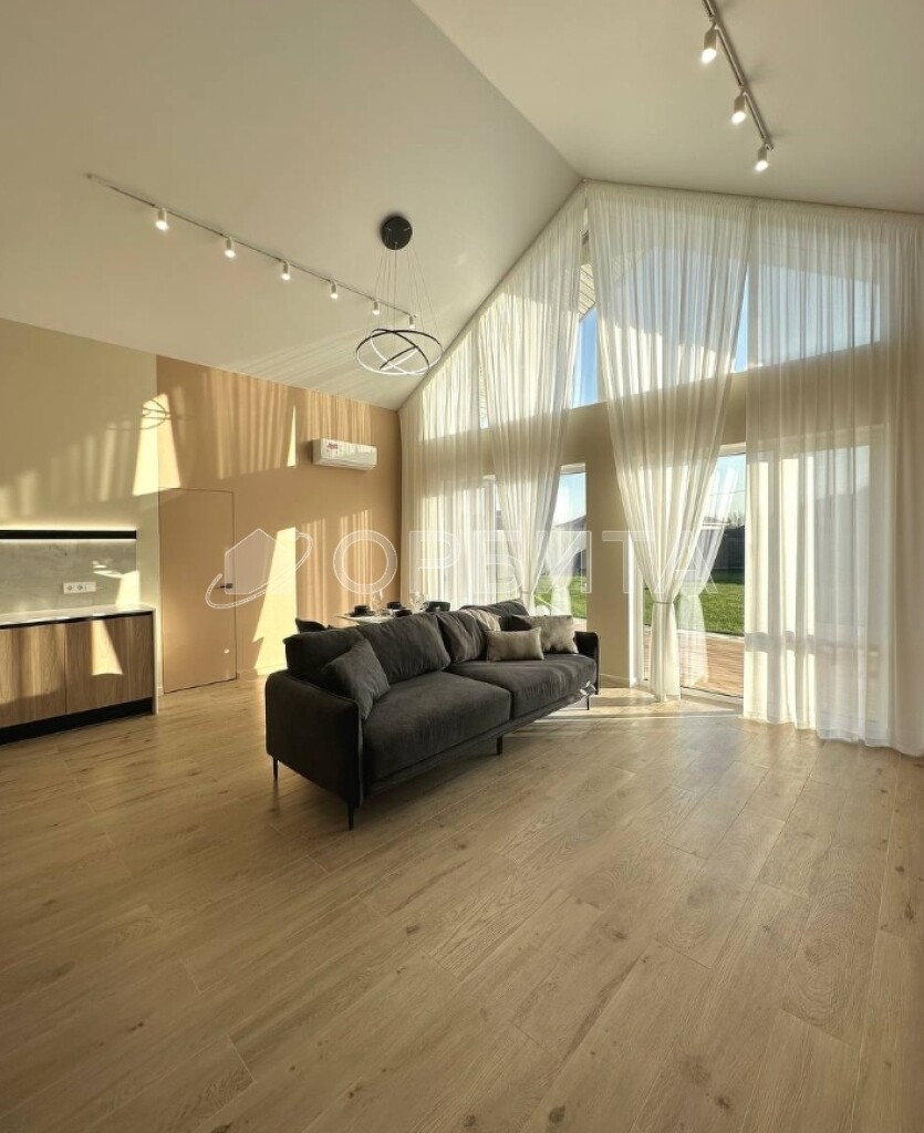 Продуманная планировка: большая кухня-гостиная с высокими потолками, уютные спальни и роскошная мастер-спальня с гардеробной и санузлом.