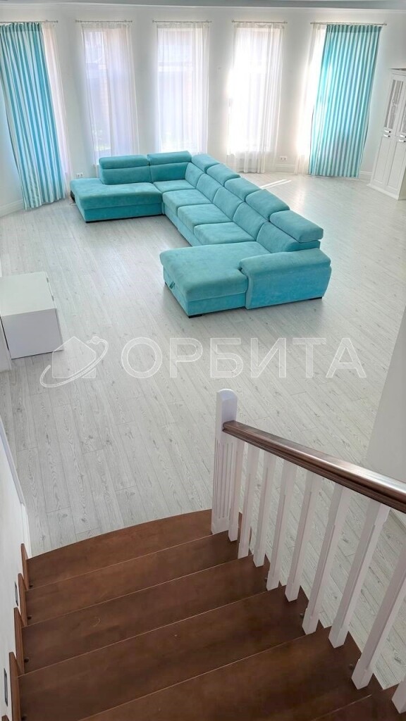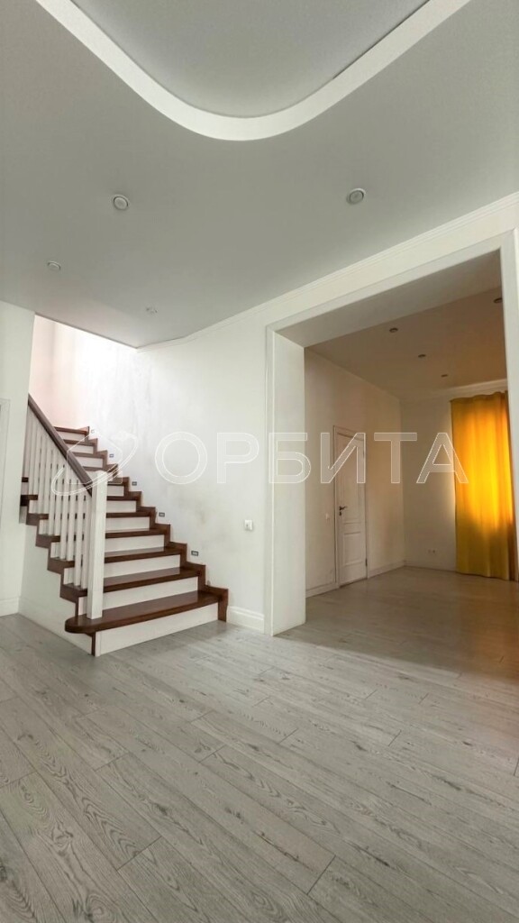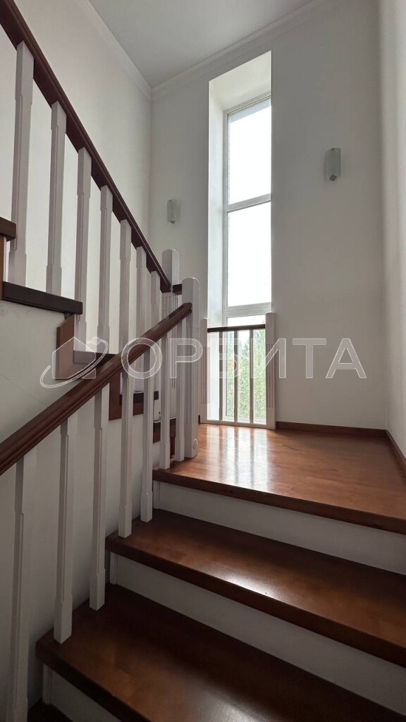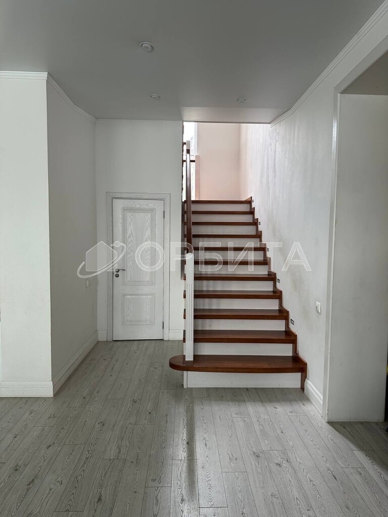 Установлена дорогостоящая добротная лестница. Двери и кухонный гарнитур из дерева.