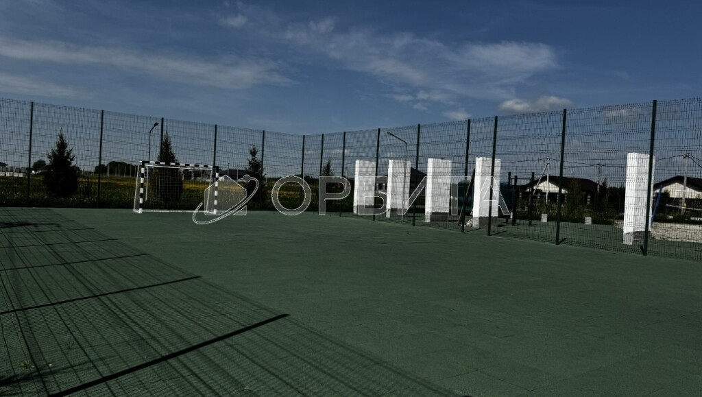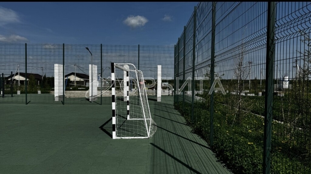 Спортивная площадка с футбольным полем, прогулочная зона.