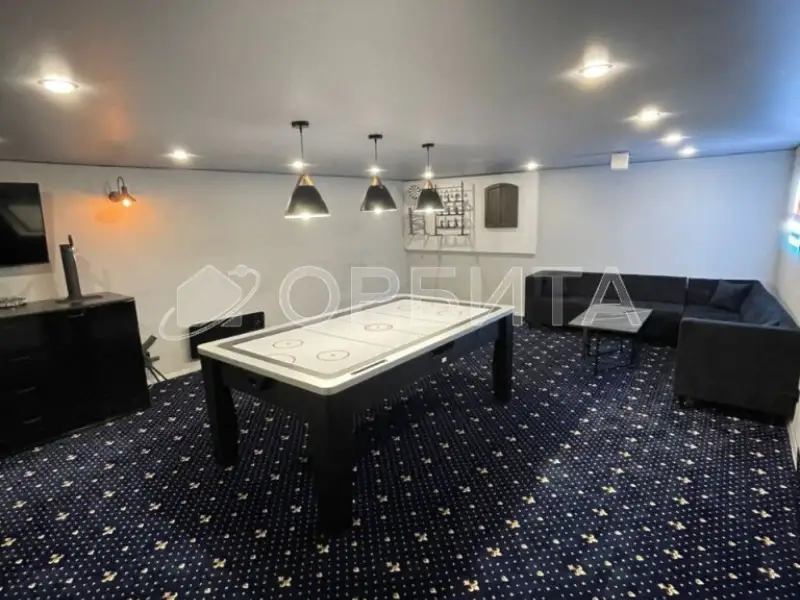 Со всей мебелью и техникой (угловой диван, прямой диван, два журнальных столика, тумба с пивным краном, холодильник для кеги, 2 телевизора, проектор многофункциональный стол (бильярд, аэрохоккей, теннис), дартс, холодильник), что продемонстрирована на фото стоимость увеличивается на 500000р.