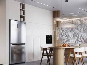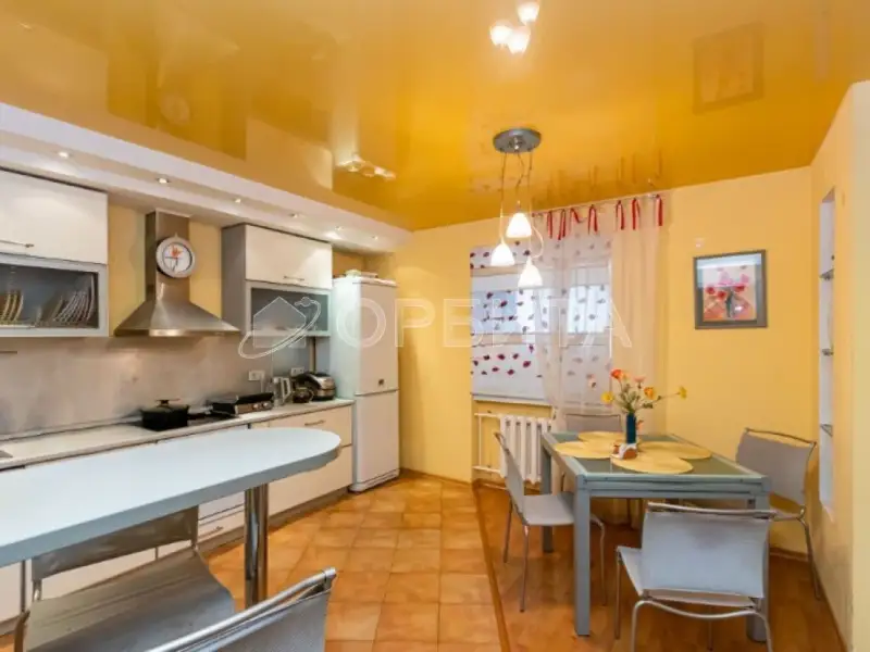 Просторная и уютная кухня-гостинная оснащена всем необходимым: кухонный гарнитур со встроенной бытовой техникой (холодильник, духовой шкаф, варочная поверхность, вытяжка, посудомоечная машина).