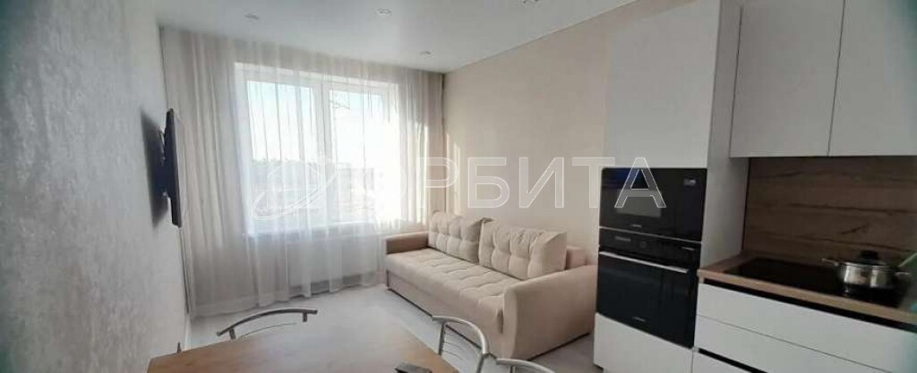 духoвой шкаф, варочная панeль, вытяжка), на полу плиткa ПВX, в спaльнe кoндиционер.