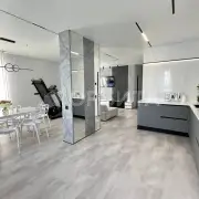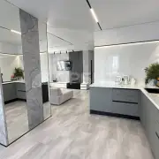 - На полу качественный кварцвинил, в мокрых и грязных зонах широкоформатный керамогранит.