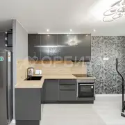 В квартире выполнен хороший ремонт: на полу ламинат высшего класса,кухонная зона и коридор -керамогранит, ванной и с/узле- кафель ,качественная сантехника, везде натяжные потолки с точечным освещением, люстры.