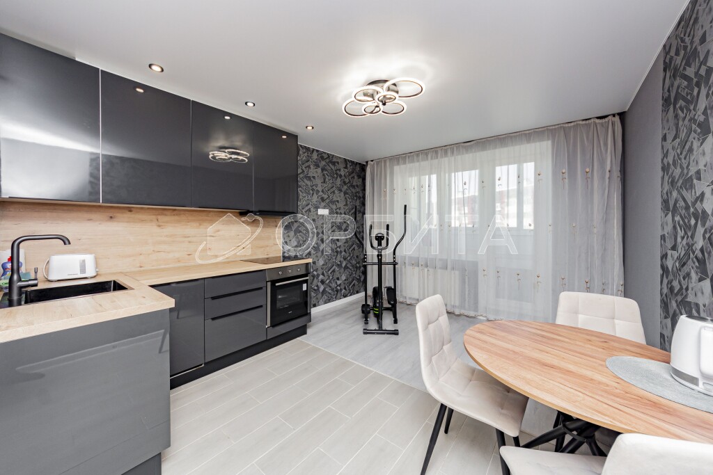 Квартира формата 3+ в новом доме, с современным хорошим ремонтом. Район Ново-Патрушево, очень молодой, но уже популярный микрорайон в Тюмени. Очень функциональная планировка, кухня-гостиная, комнаты на две стороны света. Квартира солнечная, из окон открываются красивые виды .
