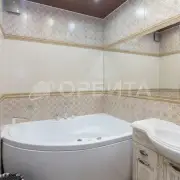 Санузел разделен на две зоны, что добавляет удобства: одна часть 4,5 кв.м., другая — 2,5 кв.м. В ванной комнате установлена угловая джакузи на 500 литров, где вы сможете расслабиться после долгого дня. В квартире также имеется видеодомофон для вашей безопасности. Просторная лоджия площадью 6,5 кв.м. застеклена и утеплена, а теплый пол создаст атмосферу уюта в холодное время года. Высокие потолки 2,7 метра визуально увеличивают пространство и делают квартиру еще более привлекательной.