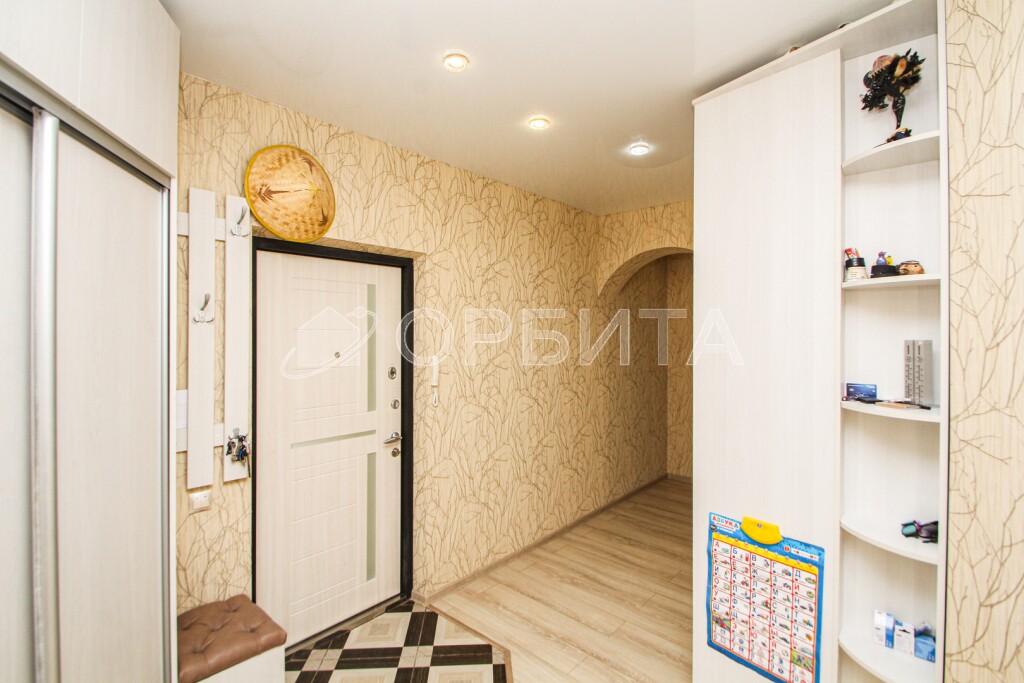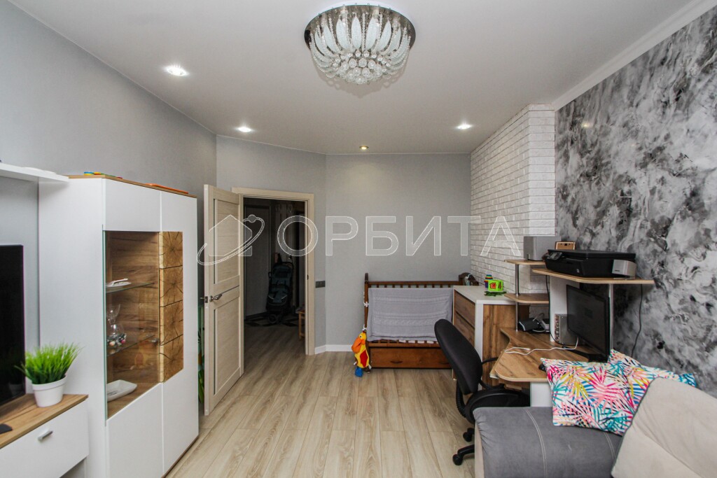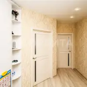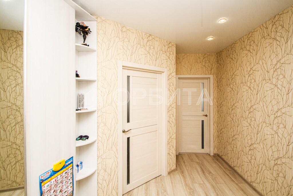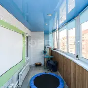 Утеплена и изнутри, и снаружи (делали для себя, а не на продажу!), кондиционер стоит, освещение продумано, подсветка по потолку — уют 10/10. Выходы — в зал и в детскую.