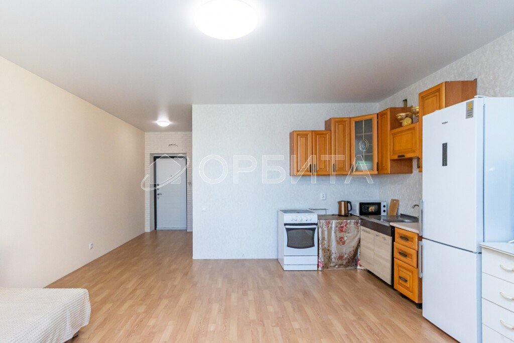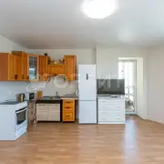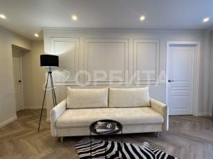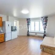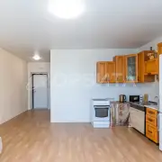 Интерьер квартиры подвергнут косметическому обновлению: стены оклеены обоями под покраску, что предоставляет владельцу возможность индивидуализировать интерьер в соответствии с личными предпочтениями. Потолок выполнен из натяжного материала, обеспечивающего эстетичный внешний вид и улучшенную акустическую изоляцию. Напольное покрытие представлено ламинатом, характеризующимся долговечностью и устойчивостью к механическим повреждениям. Санузел отделан по полу керамической плиткой, а стены подготовлены для последующего декоративного оформления.