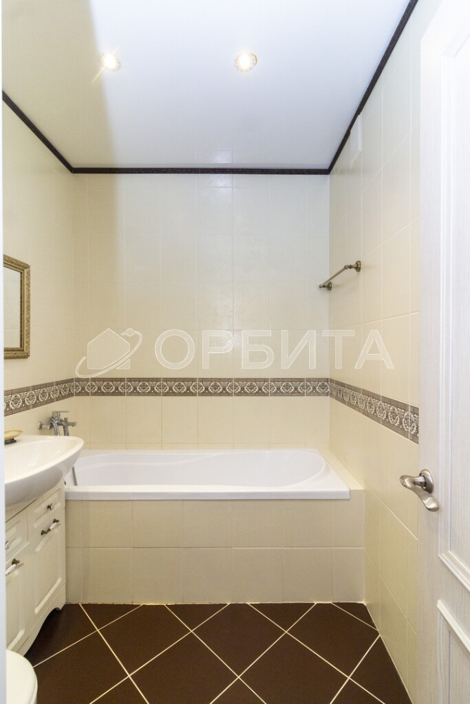 В санузле фирменная керамическая плитка.
