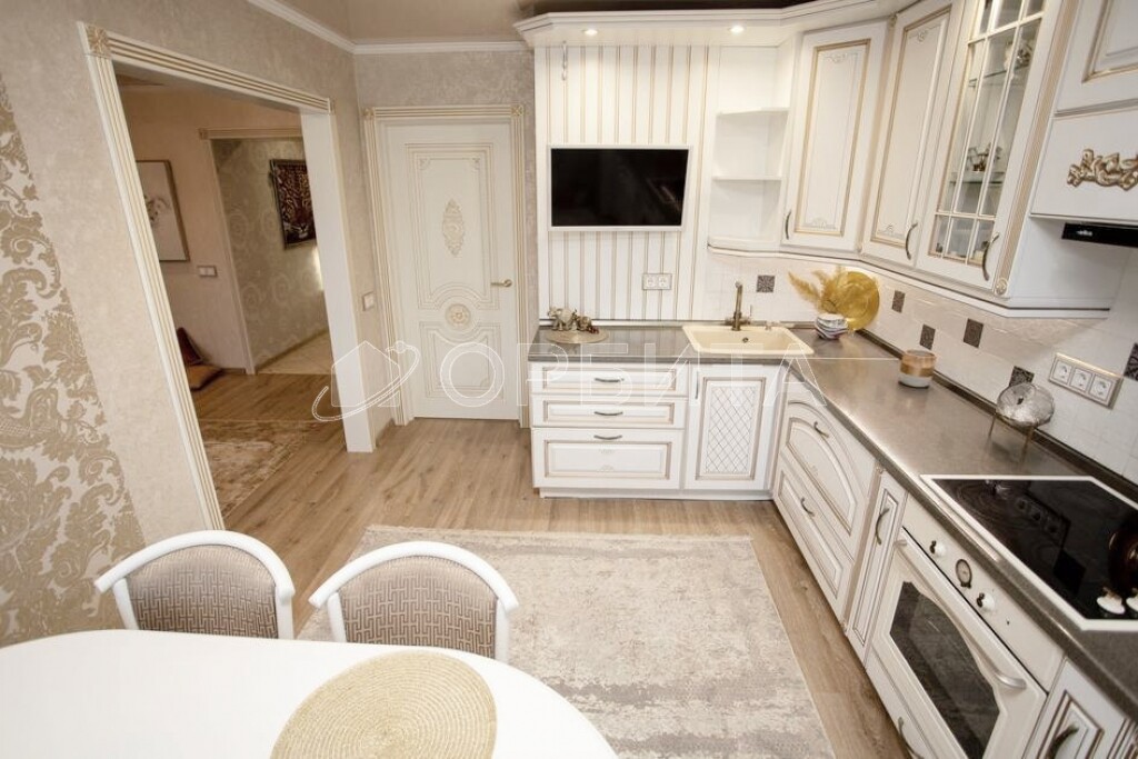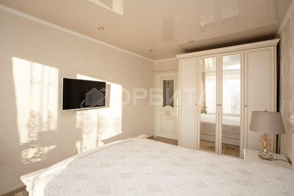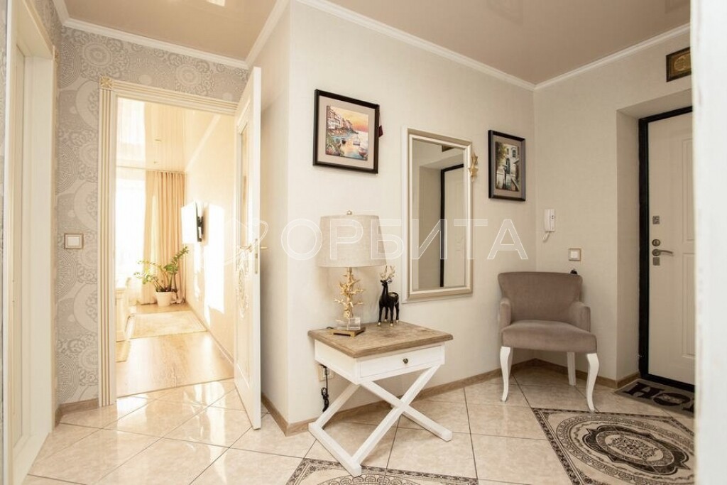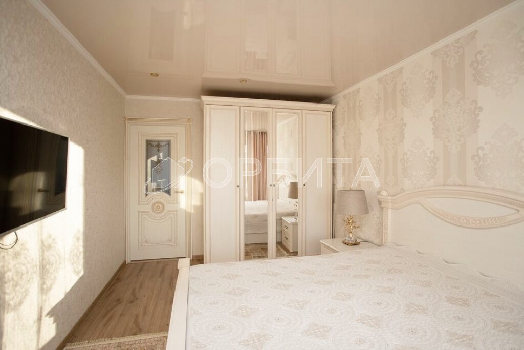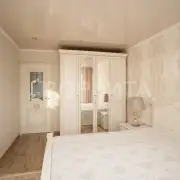 - Удобная планировка: "распашонка" (окна выходят на две стороны дома), просторные комнаты и наличие гардеробной комнаты делают квартиру комфортной для проживания.