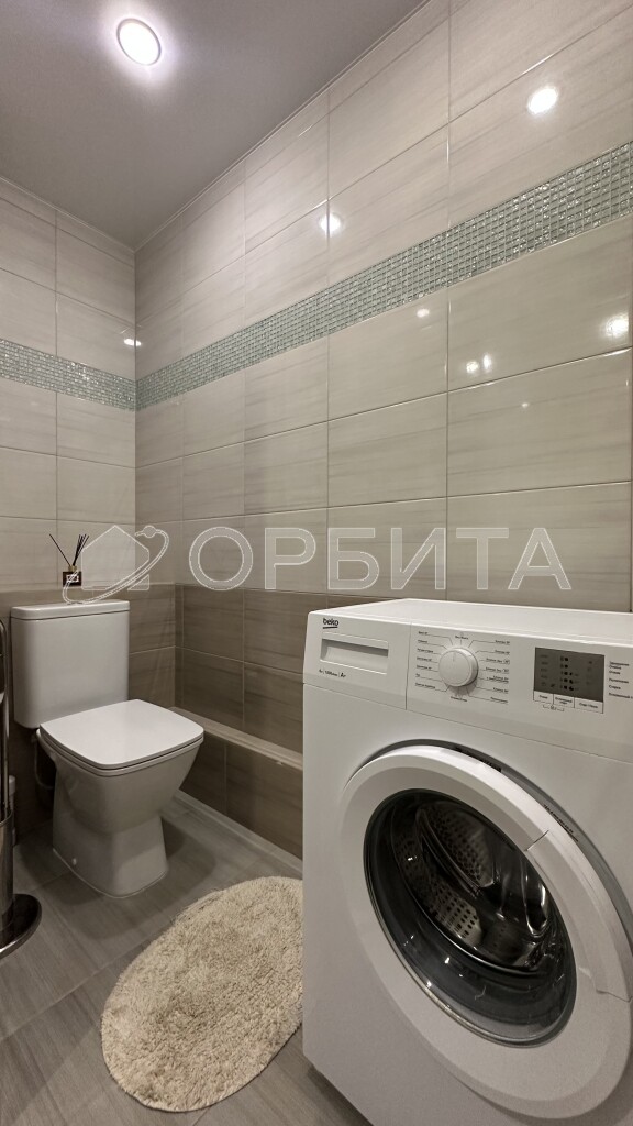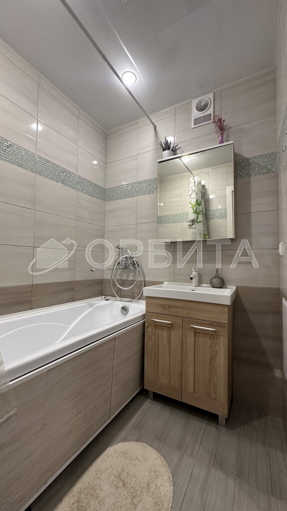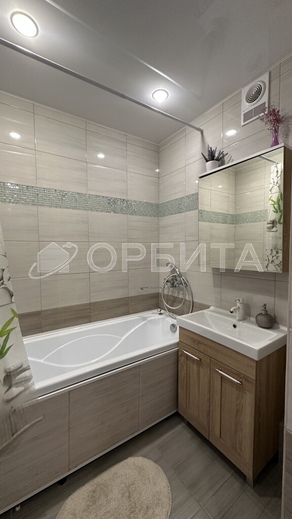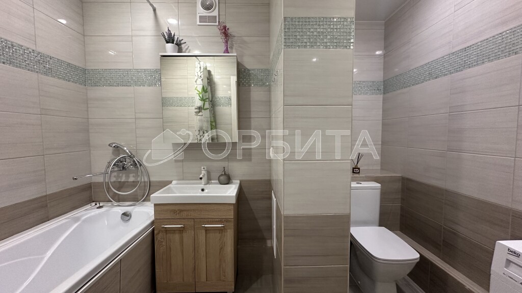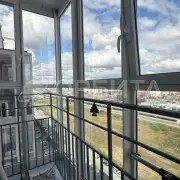 Санузел полностью в кафеле, что обеспечивает долговечность и легкий уход. Просторный балкон с витражным остеклением — дополнительное пространство для отдыха.