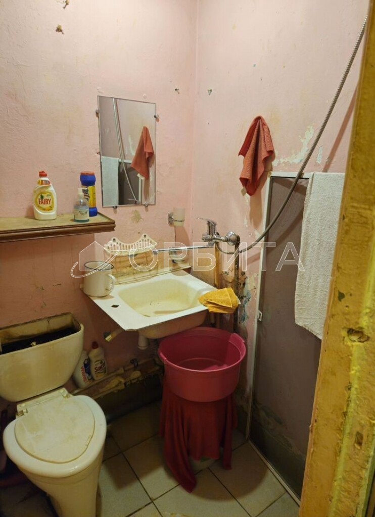 • Будущий комфорт: Новый унитаз, раковина и плитка уже куплены – завершите ремонт в санузле на свой вкус.