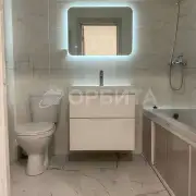 • Полностью оборудованный санузел: В ванной комнате установлена ванна, раковина с тумбой, унитаз, электрический полотенцесушитель и теплый пол, обеспечивающие максимальный комфорт.