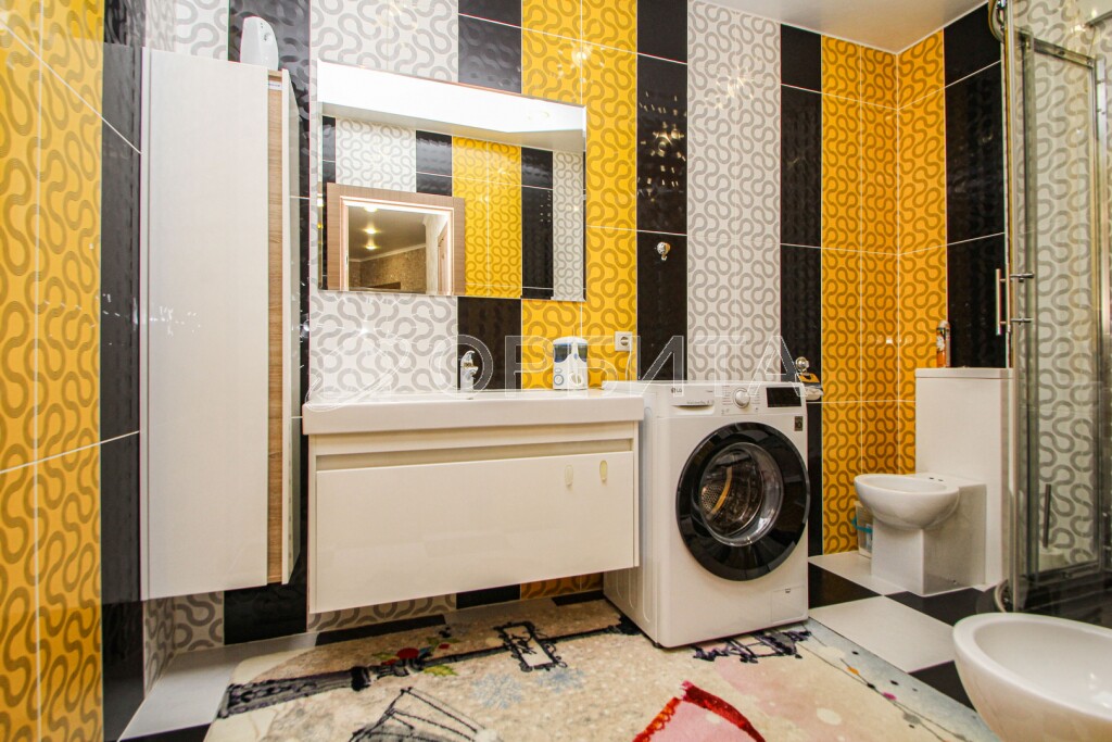 • Ванная комната с теплым полом, большой умывальник с зеркалом (100×100), биде, унитаз и душевая кабина с тропическим душем. Все мебель от итальянских производителей.