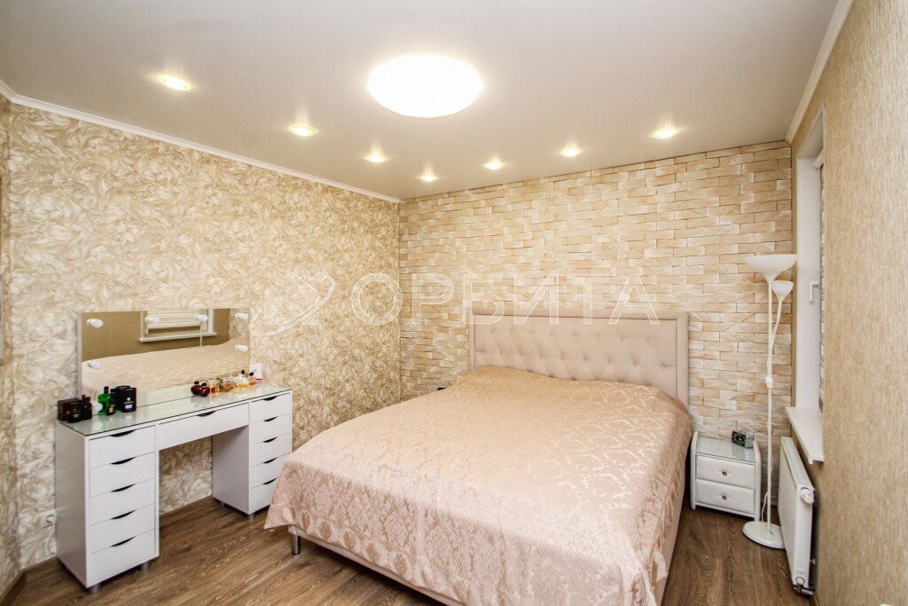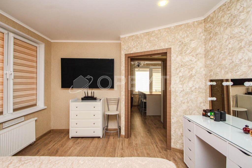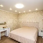 • Спальня с шикарной двуспальной кроватью (200 см × 180 см) и вместительной гардеробной.