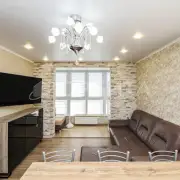 • Гостиная (23 кв.м.) с великолепным кожаным диваном и оттоманкой, раскладывающимся в двухспальную кровать. Из окон открывается потрясающий вид на город!