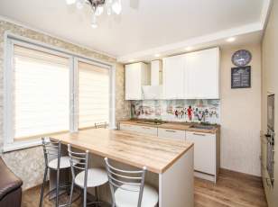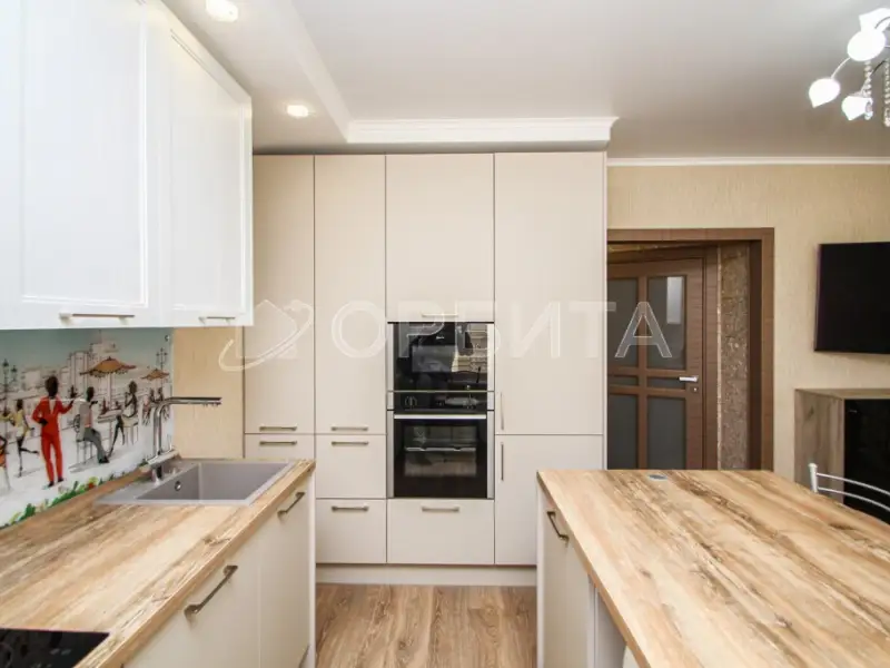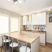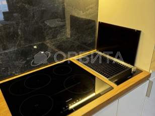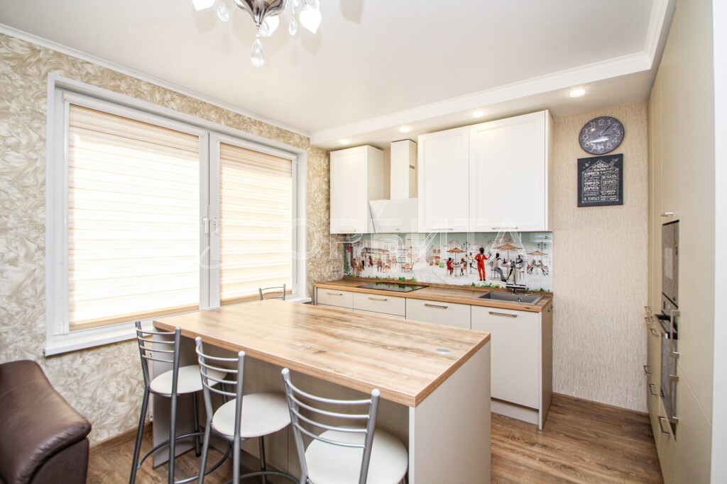 • Кухня с красивым кухонным гарнитуром и всей необходимой техникой от Neff (Германия): вытяжка, варочная поверхность, посудомоечная машина, микроволновая печь и духовой шкаф. Большая столешница острова с выкатной розеткой — идеальное место для кулинарных шедевров!