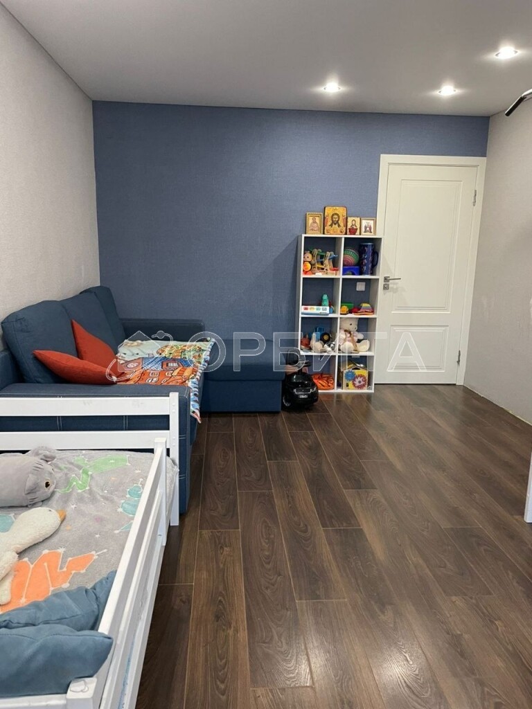 Современный дизайн интерьера включает качественное напольное покрытие ламинатом, эстетичные натяжные потолки и аккуратные обои на стенах.