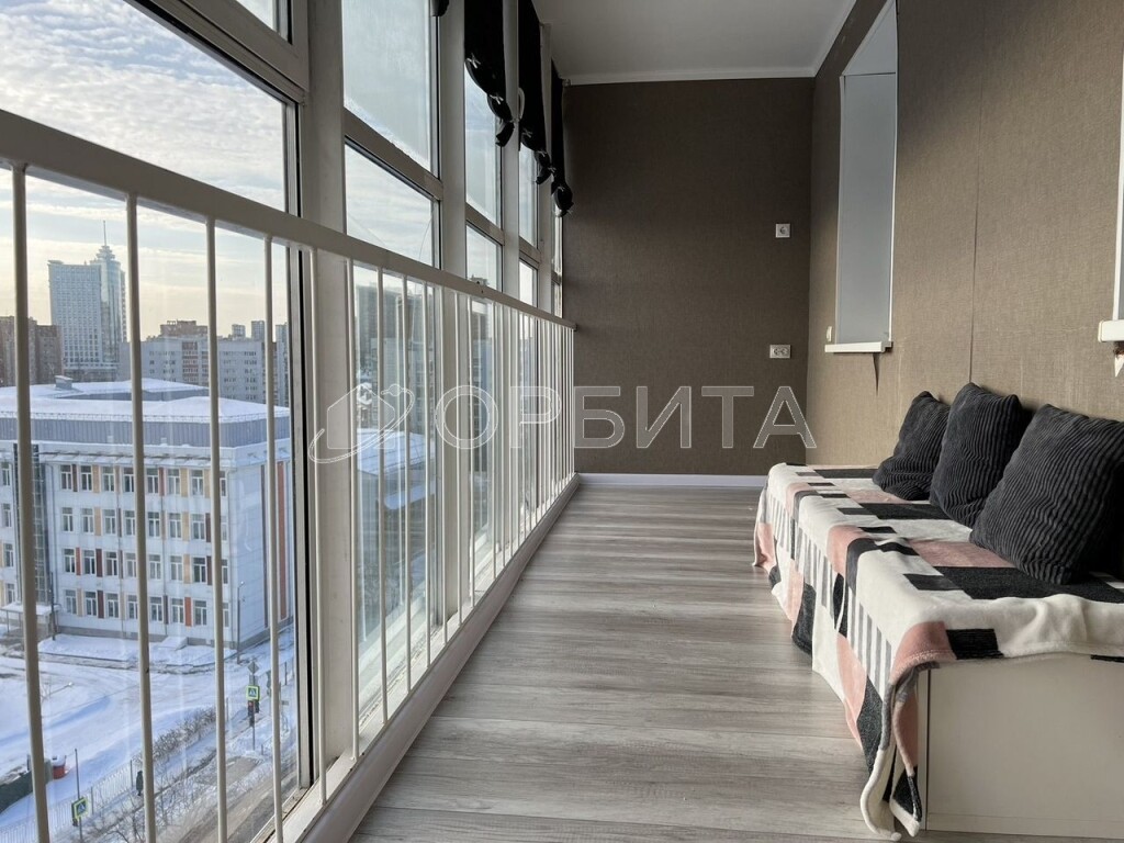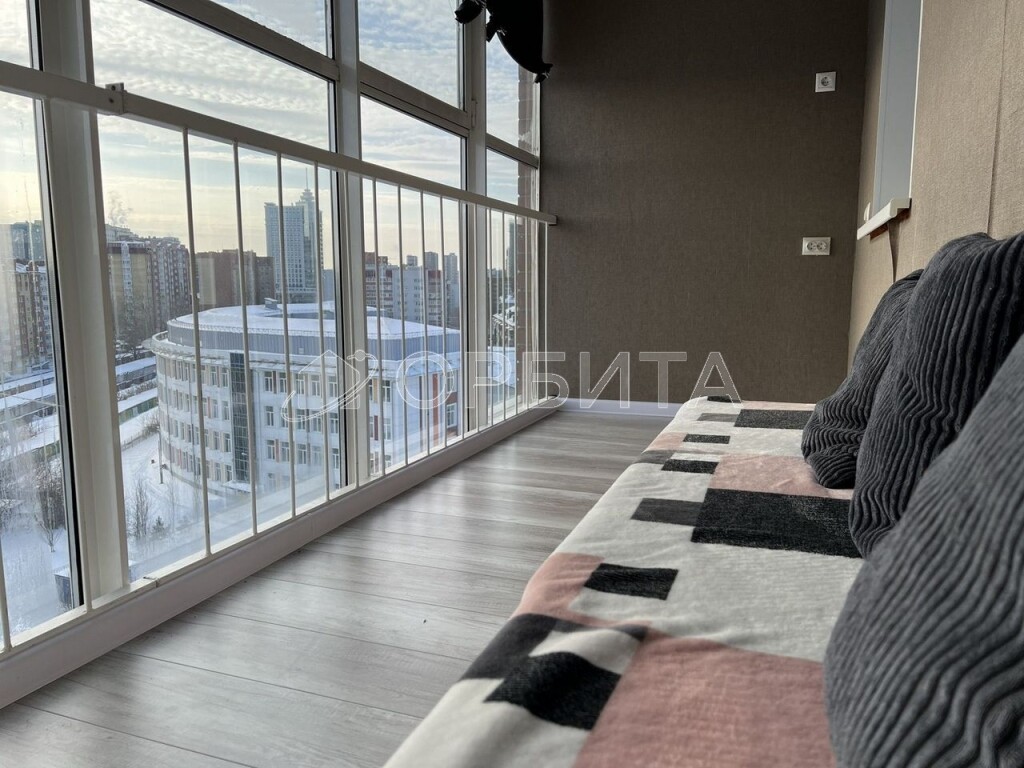 * огромная видовая лоджия площадью около 10 м² с панорамными окнами.
