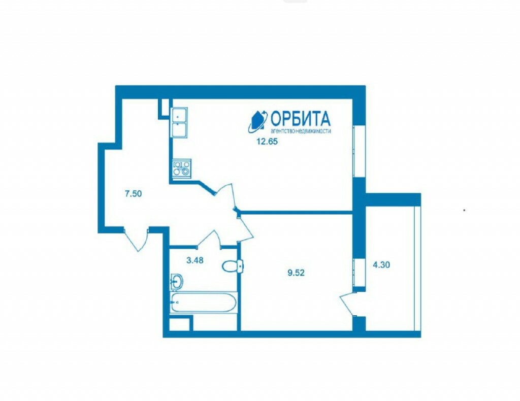 1к - квартира 33.8 м2 19 эт.