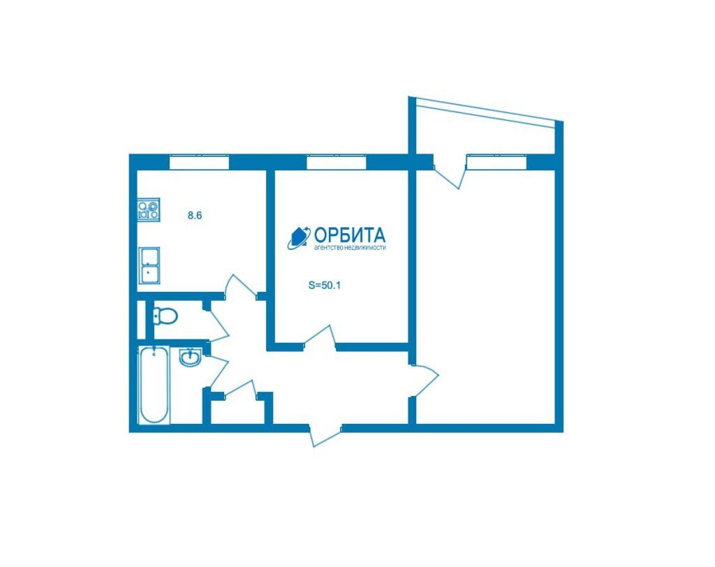 2к - квартира 53.7 м2 4 эт.