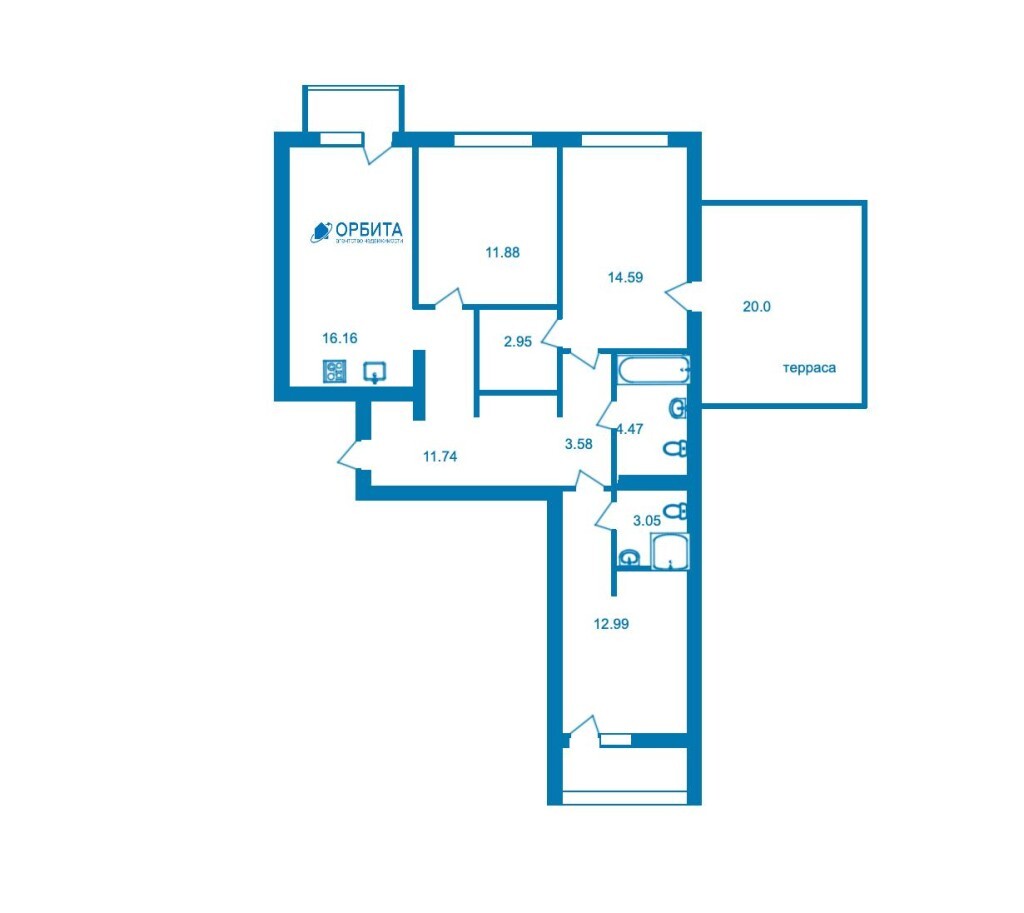 3к - квартира 105.5 м2 9 эт.