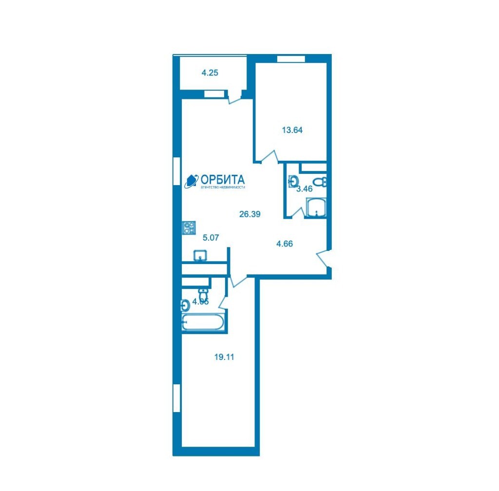 2к - квартира 77.3 м2 5 эт.