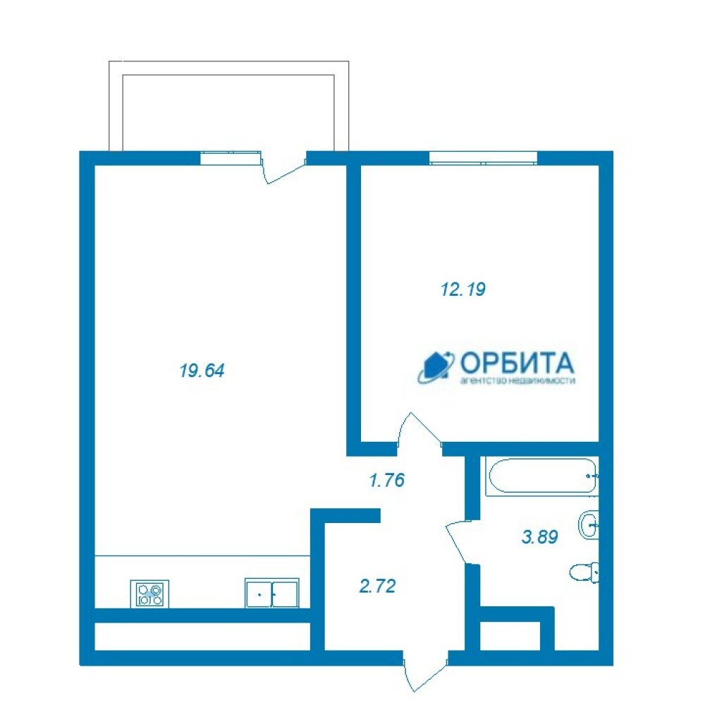 1к - квартира 40.7 м2 4 эт.