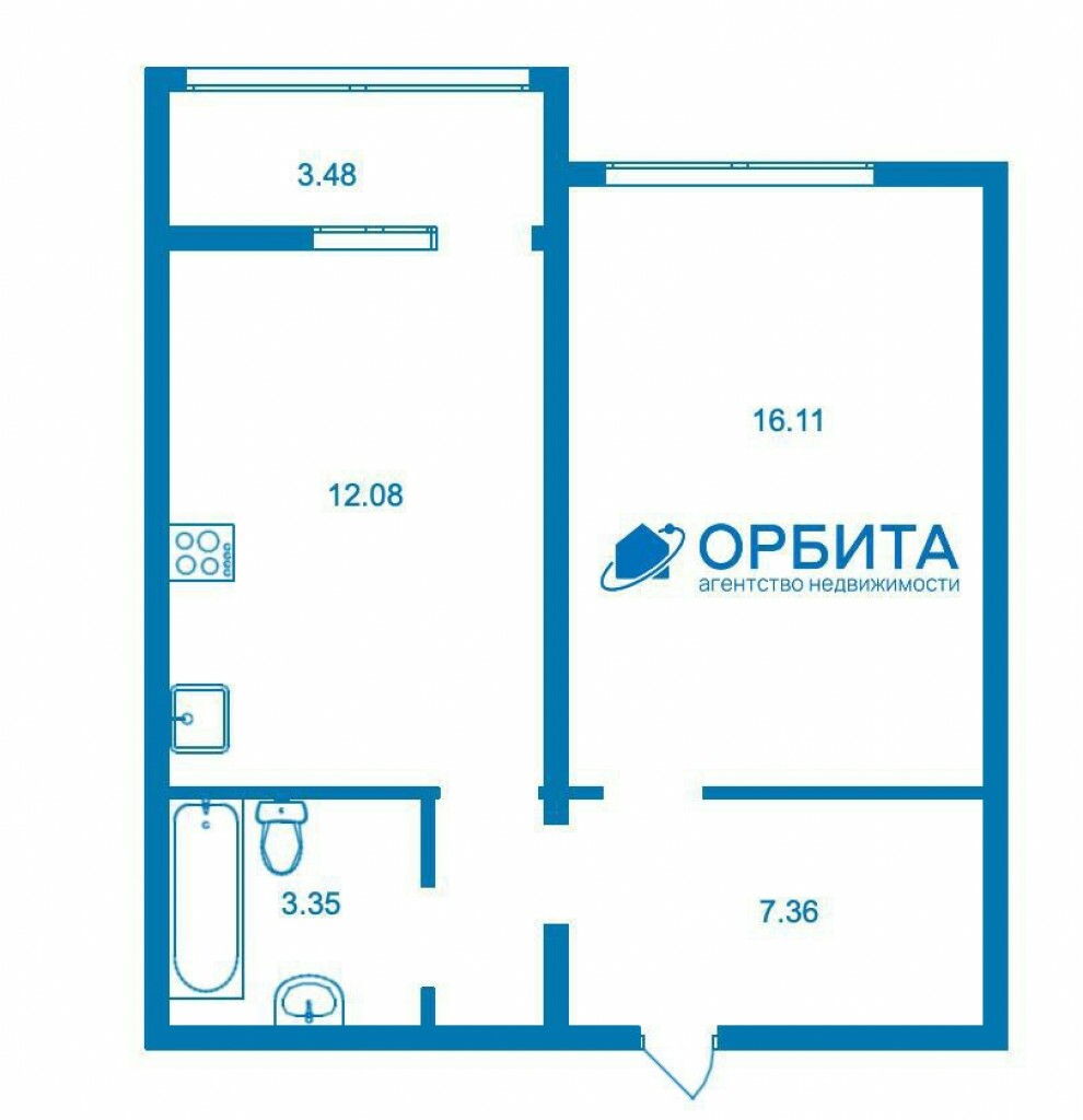 1к - квартира 38.9 м2 4 эт.