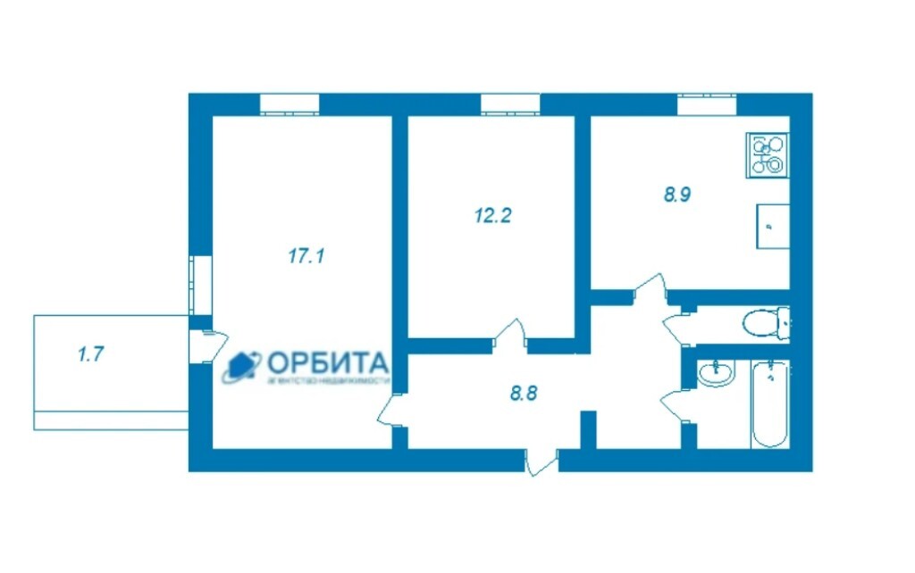 2к - квартира 50.7 м2 5 эт.