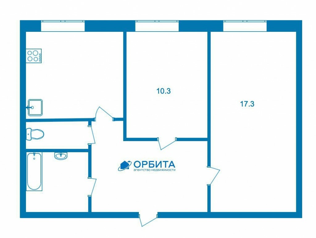2к - квартира 51.6 м2 1 эт.