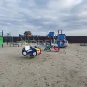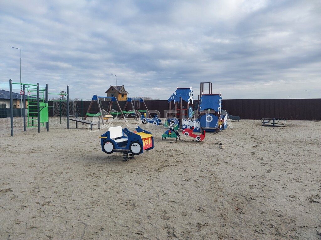 Рядом детская площадка и остановка.