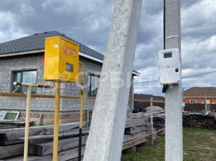 На втором участке - дом из керамзитоблоков, используемый под гараж.