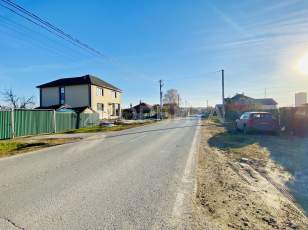 Газ проходит по улице, а электрический столб стоит рядом с участком. Улица тупиковая, проезд имеет ограниченное число соседей. Есть возможность разделить участок на две части.