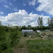 Участок правильной прямоугольной формы, по задней части свой выход в рощу. С двух сторон живут соседи. Хорошая плодородная почва, растут плодовые деревья и кустарники.